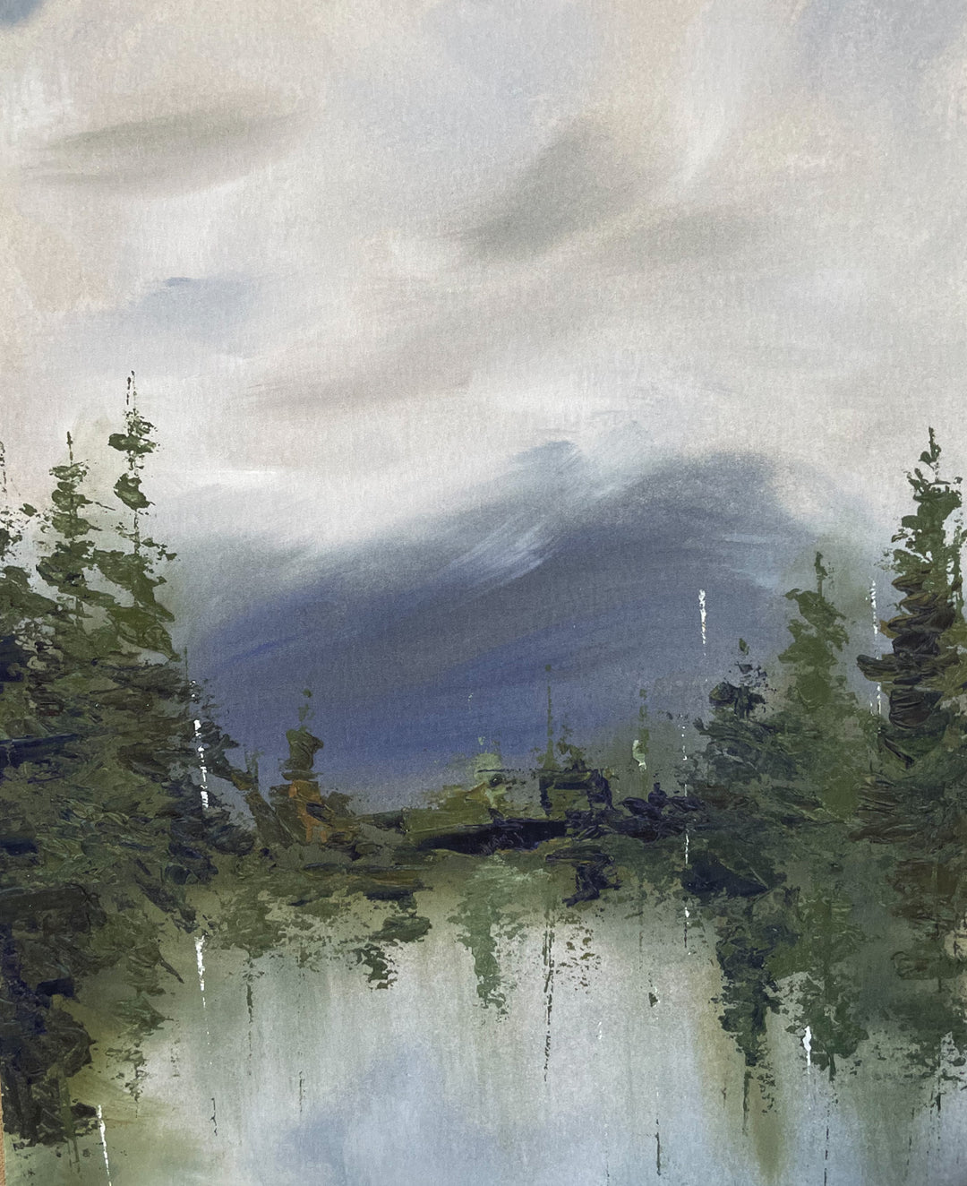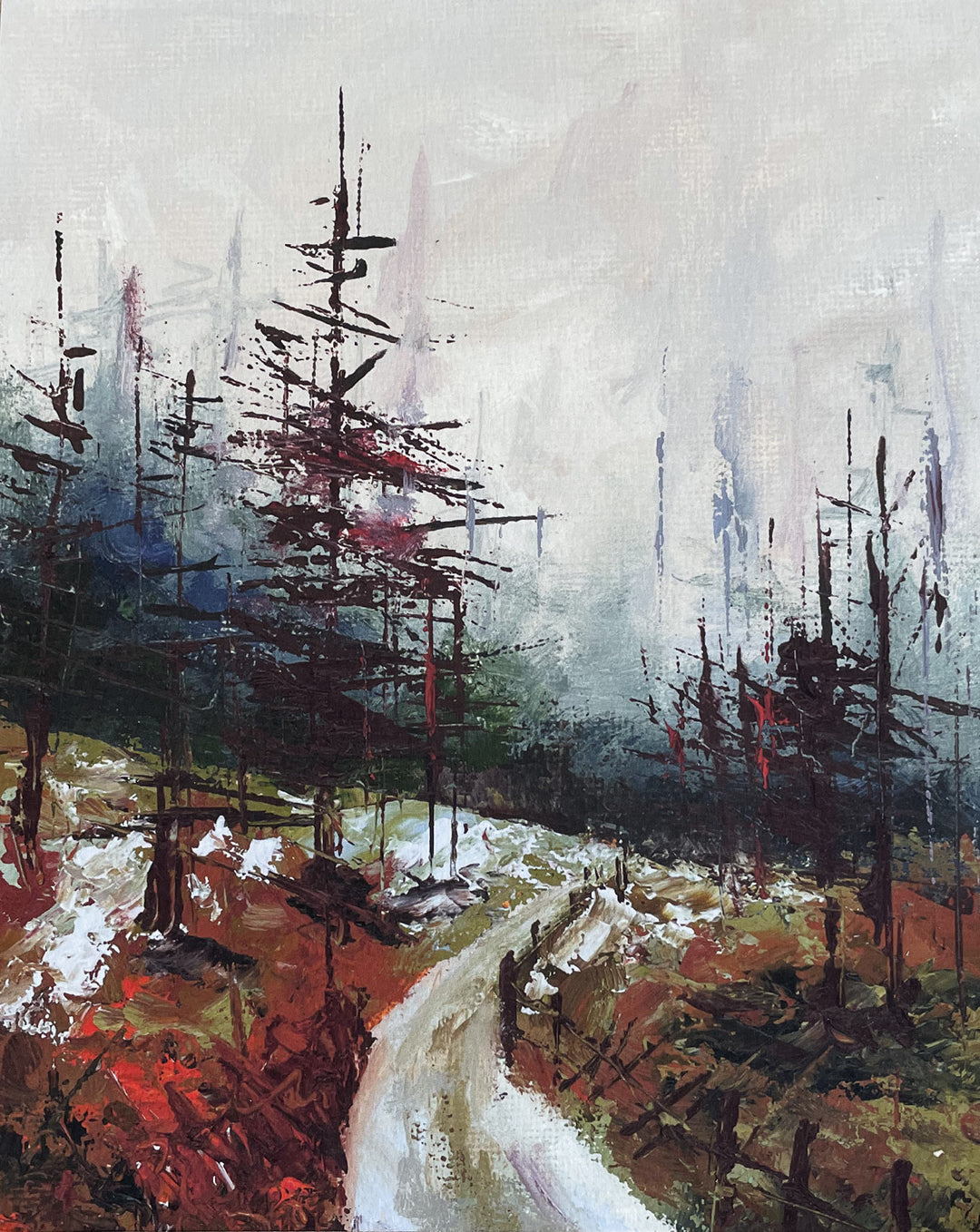 She uses her love of movement with the palette knife to dance the colours and figures around the canvas in an expressionist style. All while staying authentic to the feeling of the painting with her unique vision.